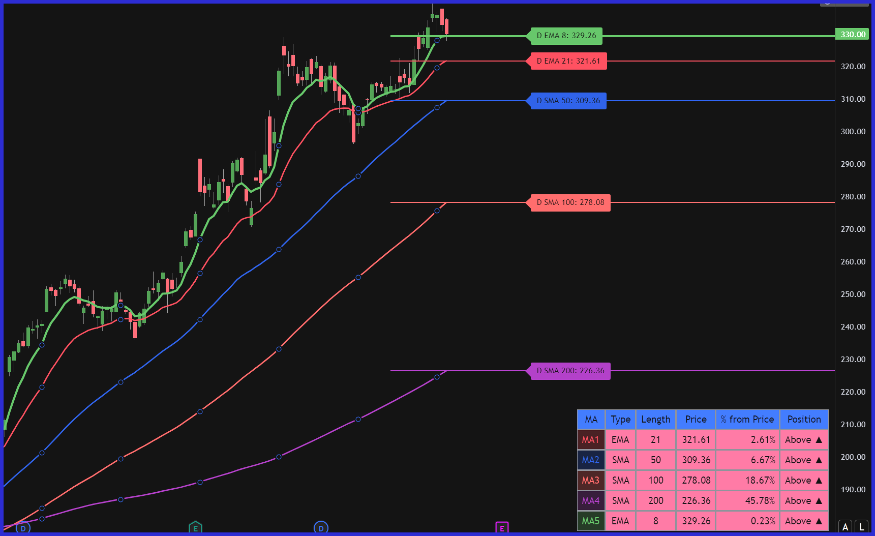 - Bubbles/Labels: Price labels with MA information displayed clearly